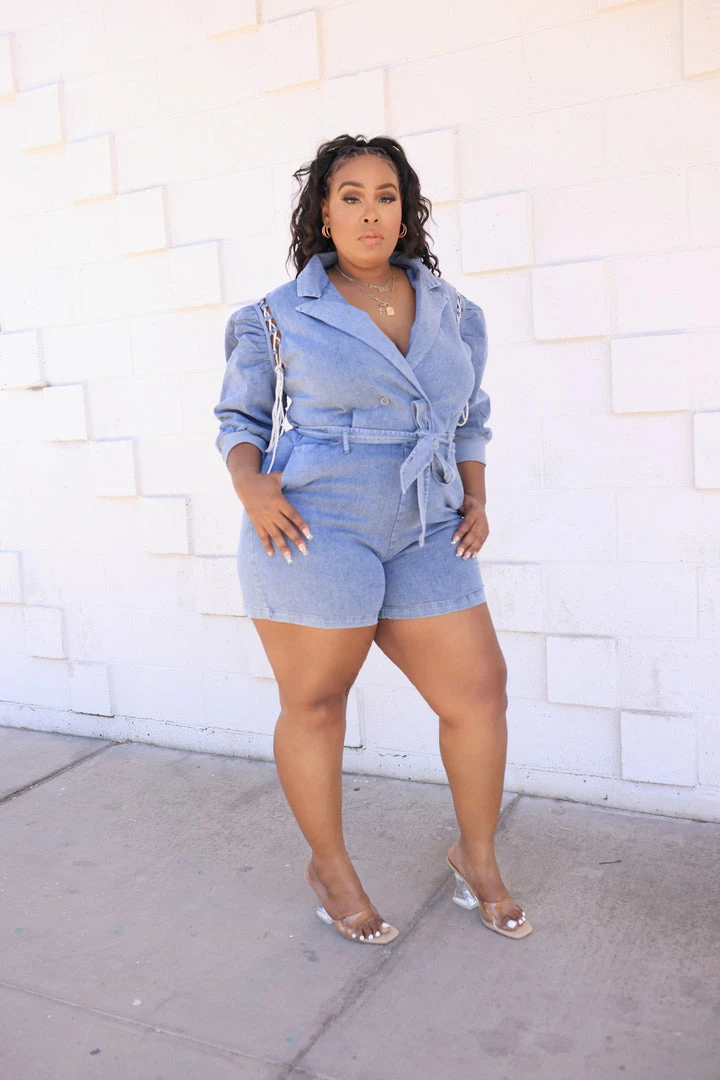 Boutique115 “Make Room For The Heiress ” Houndstooth Jumpsuit – Baby Blue Jumpsuits + Rompers