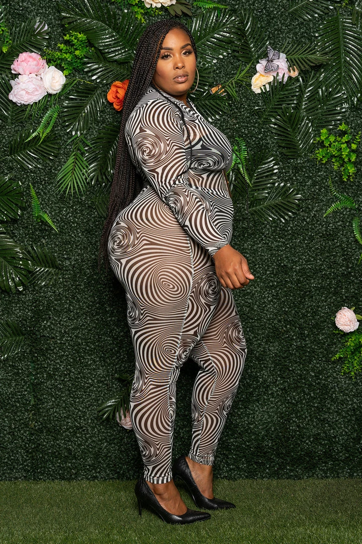 Boutique115 Jumpsuits + Rompers “Butta Love” Bell Sleeve Jumpsuit – Houndstooth Black White