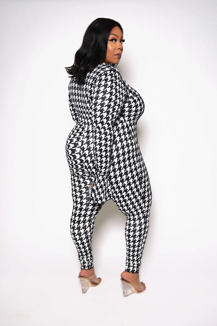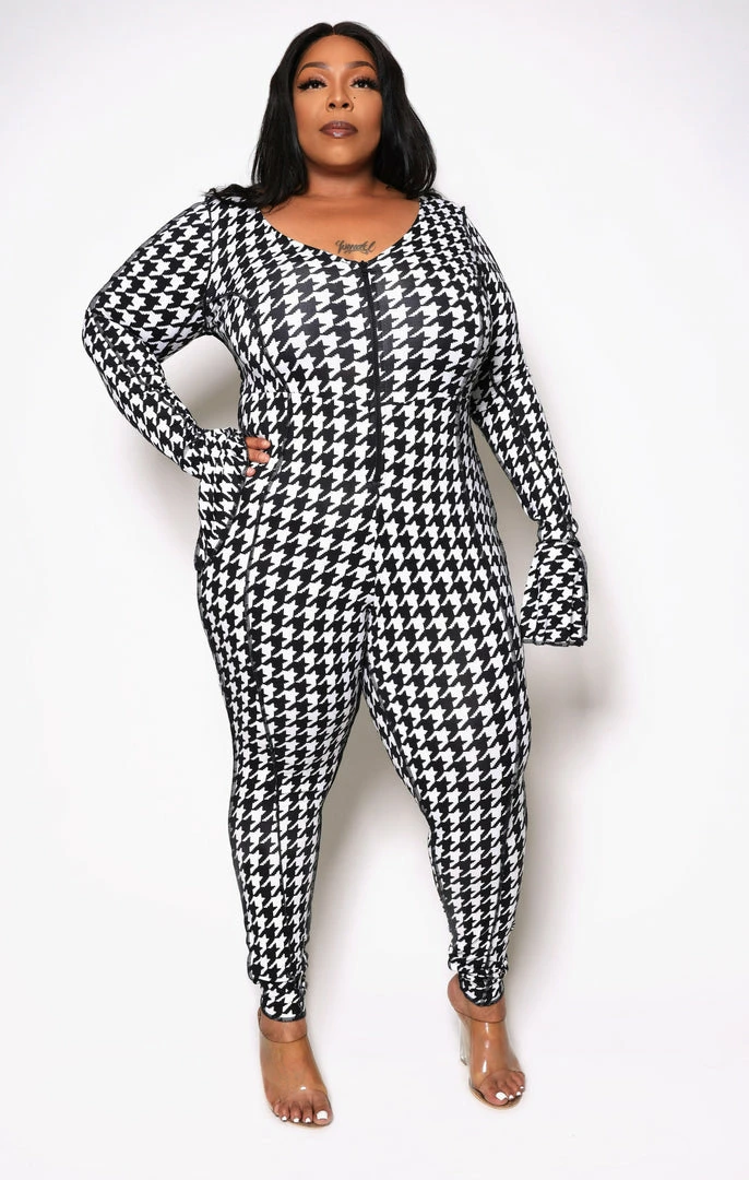 Boutique115 “Check Me Out” Houndstooth Wide Leg Jumpsuit – Beige Black White Jumpsuits + Rompers