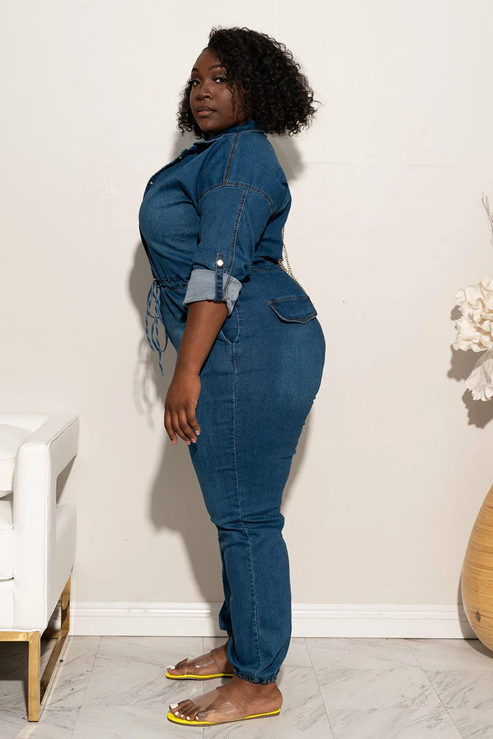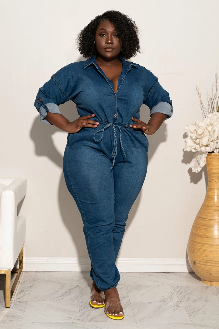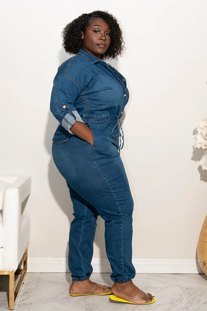 Boutique115 “Pump Your Brakes” Scrunched Jumpsuit – Royal Blue