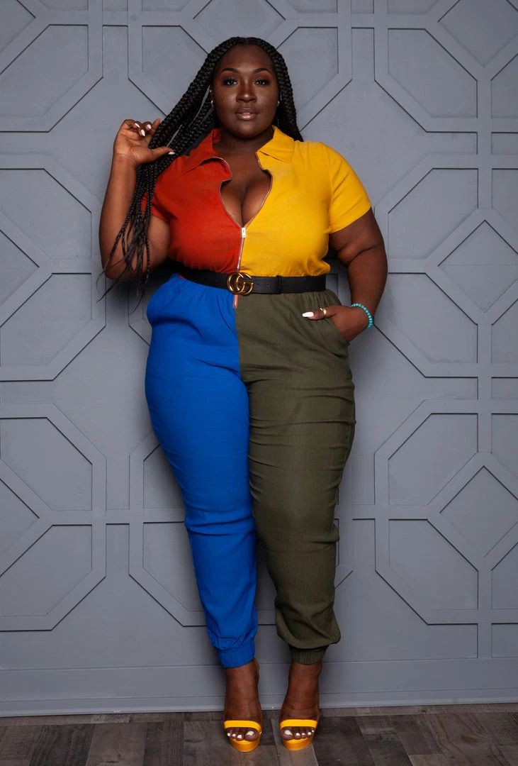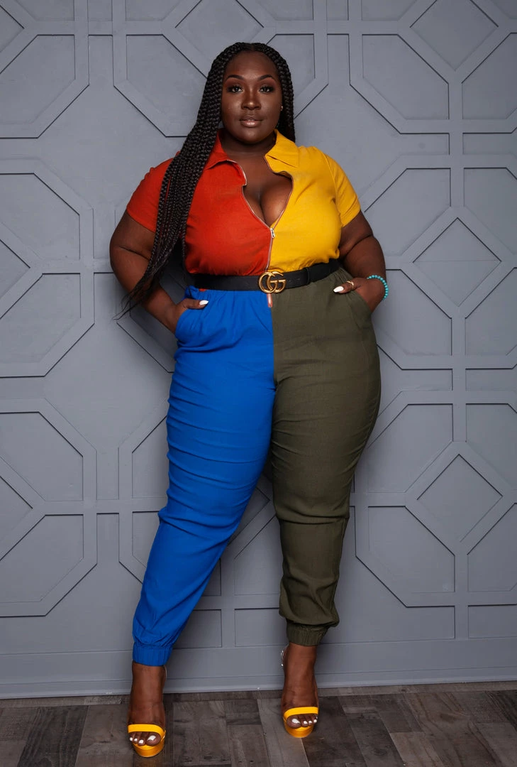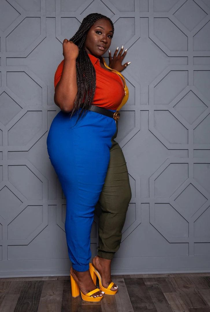 Boutique115 Jumpsuits + Rompers “Twisted Beauty” Belted Wide Leg Jumpsuit – Burgundy Green Pink