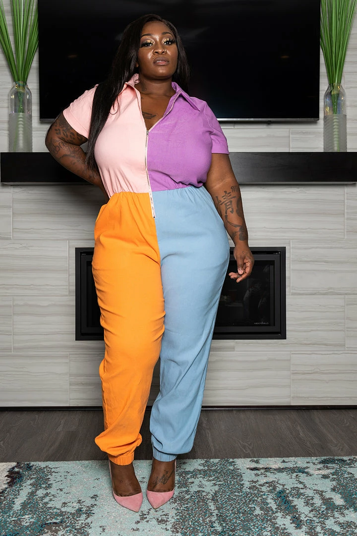 Boutique115 Plus Size “Heaven On Earth” One Sleeve Jumpsuit – Mango Yellow Jumpsuits + Rompers