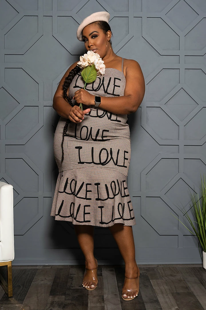 Beautifully embroidered LOVE flirty flare dress.