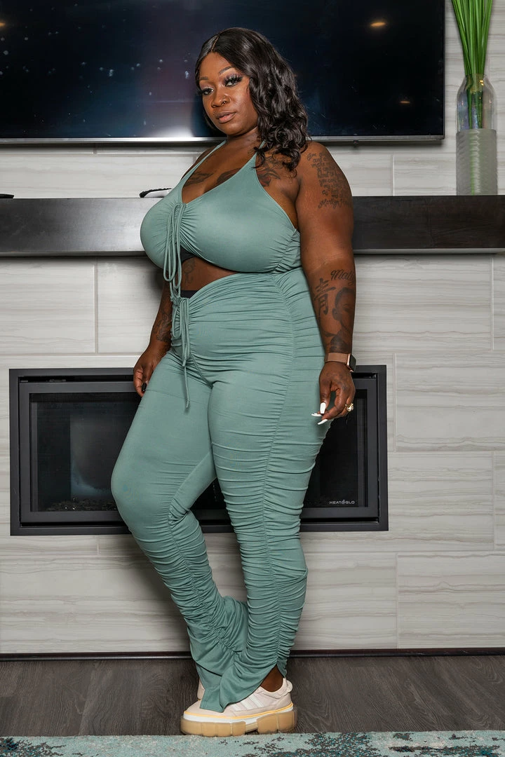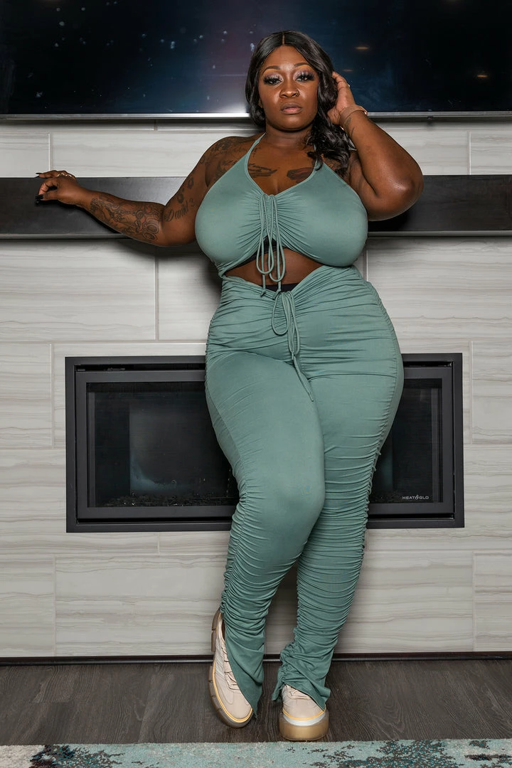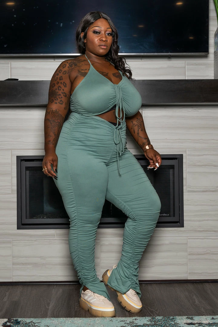 Be the first to review “Boutique115 “Pump Your Brakes” Scrunched Jumpsuit – Sage” Cancel reply