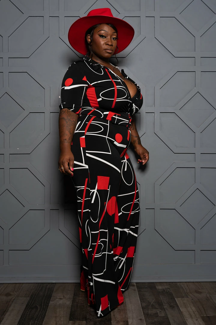 Boutique115 “Check Me Out” Houndstooth Wide Leg Jumpsuit – Beige Black White Jumpsuits + Rompers