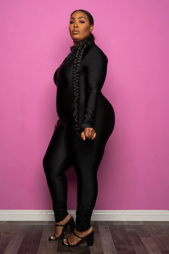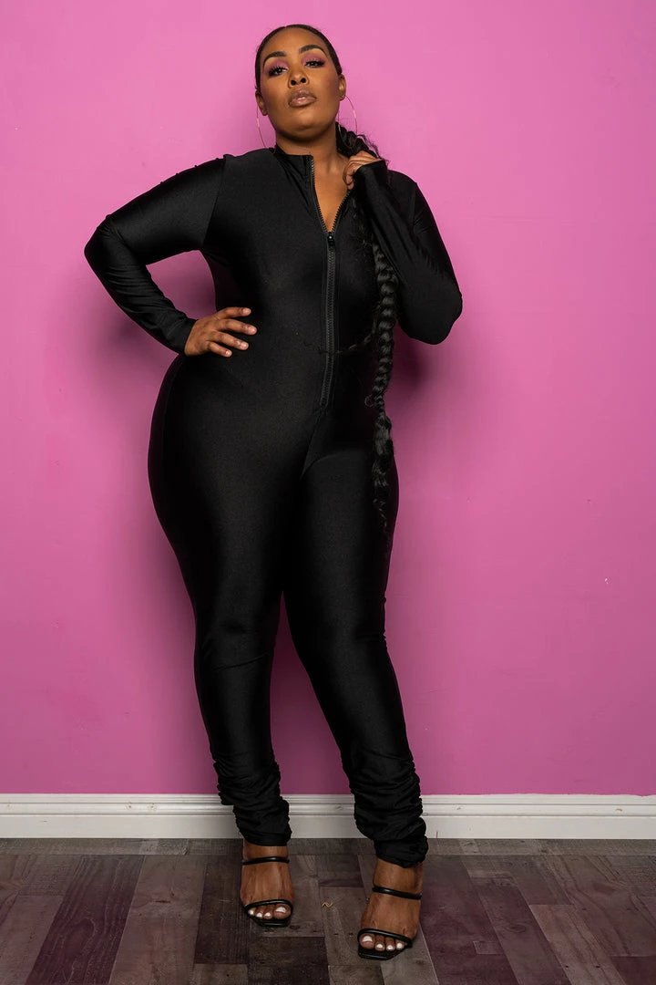 Boutique115 “Mercury Retrograde” Vegan Leather Long Sleeve Jumper – Black Jumpsuits + Rompers