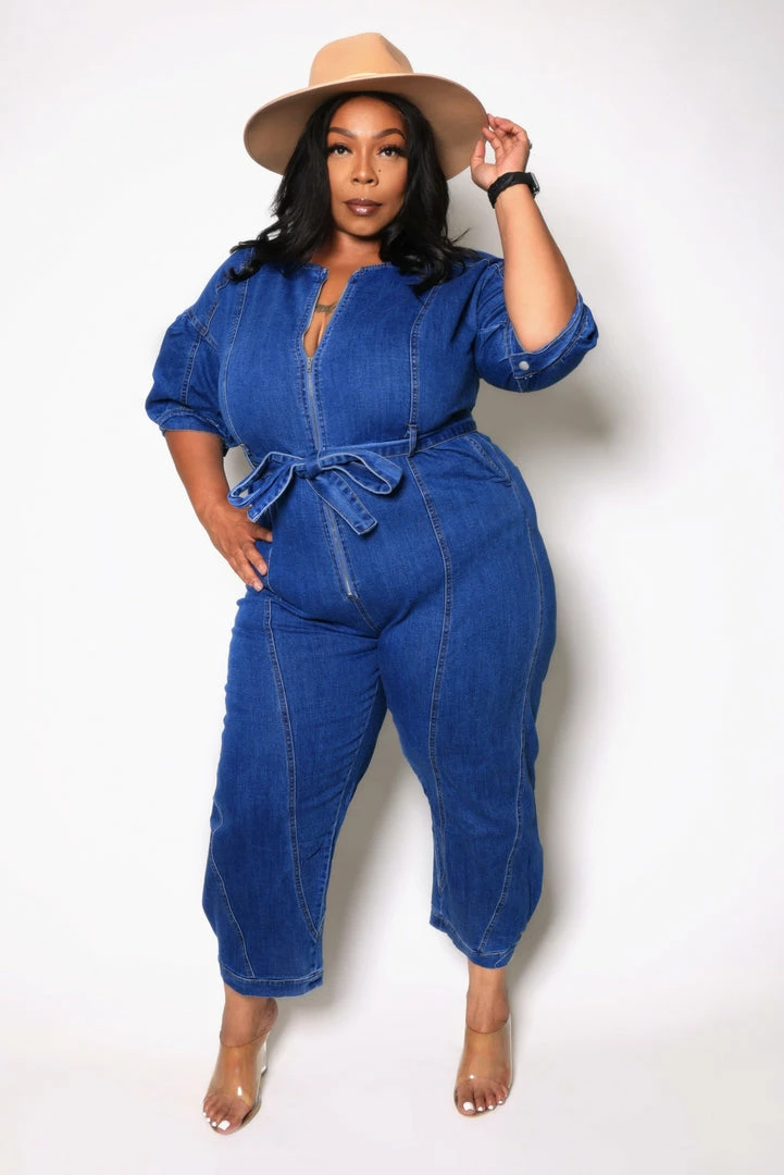Boutique115 “Glamorous Life” Bling Denim Romper – Light Blue Jean Jumpsuits + Rompers